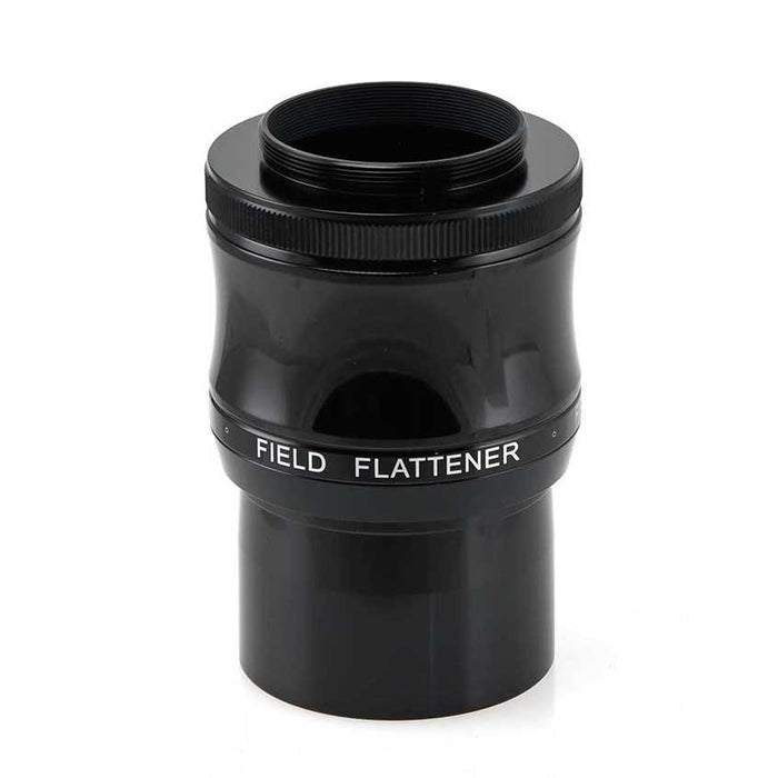 The corrector is suitable for ED, apochromatic or achromatic refractors from 70 mm aperture to 102 mm aperture. It corrects the error at the edge and thus allows astrophotography through the telescope. The stars are imaged pinpoint up to the edge. The focal length of the refractor is not changed.