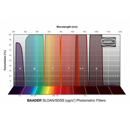 Options availableBaader SLOAN Bandpass Filter Set, suitable from f/15 to f/1.8 SLOAN/SDSS (ugriz’) photometric filter with transmission according to SLOAN-speci...