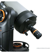 NexStar Evolution est équipé de 4 ports auxiliaires - 2 en haut de la fourche et 2 en bas. Une commande manuelle NexStar+ classique est incluse, mais n'est pas nécessaire lors de l'utilisation de NexStar Evolution avec l'application mobile. Le télescope comprend également un chercheur StarPointer, deux oculaires Plossl de 1,25", une diagonale en étoile de 1,25" et un adaptateur secteur.