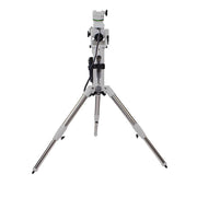 Grâce à l'extension de pilier qui se trouve entre la tête de montage et le trépied, l'AZ-EQ5 peut être aligné polaire à presque toutes les latitudes. La plupart des montures équatoriales ont des difficultés avec l'alignement polaire à des latitudes plus basses en raison de la barre de contrepoids interférant avec le trépied. L'AZ-EQ5 contourne complètement cela, en utilisant une extension de pilier costaud pour élever la tête de montage loin des pieds du trépied. L'extension de pilier crée suffisamment d'espace entre la barre de contrepoids et les pieds du trépied pour que le support puisse être aligné polaire à pratiquement n'importe quelle latitude, depuis l'Alaska. de l'Equateur à la Terre de Feu.