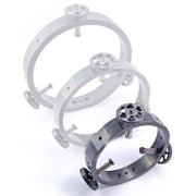 ></div><h4>Modularité</h4><p>L'une des caractéristiques distinctives de nos anneaux de guidage est leur capacité à être interconnectés les uns avec les autres, ou à attacher facilement d'autres équipements auxiliaires (viseurs, pointeurs, etc.). Les plats usinés et les trous de montage permettent aux anneaux d'être assemblés dans un certain nombre de configurations, vous permettant de monter et d'ajuster plusieurs guides, viseurs ou autres instruments auxiliaires. Comme le montre l'image ci-dessous, il y a 5 emplacements autour de la périphérie de chaque anneau qui ont été usinés comme points de fixation. Chaque emplacement a un méplat usiné, et un trou central fileté 1/-4-20. Remarque : Afin de coupler plusieurs anneaux, vous devrez percer l'un des trous 1/4-20 avec un 1/4