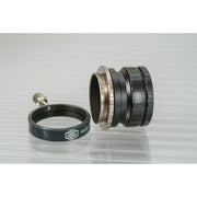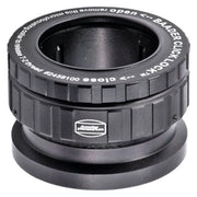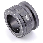 The holder is precisely machined to fit your eyepieces with a minimum of slop, resulting in a close accurate fit that keeps your eyepiece properly centered on the optical axis. The long contact length of the cam rollers also makes this holder compatible with all grooved eyepiece barrels by bridging the groove. No more mismatch or hassle of unlocking from the groove. The secure grip of the cam lock makes the grooved barrels obsolete. On the front (input) side, the eyepiece clamp has an internal T-2 thread, to mate it to the other components of the T-2 system. On the output, Baader has added two additional unique and useful features. The top of the holder is actually an adjustable micro-focusing collar, with 6.5mm of travel. It allows you to precisely vary and set the overall clamp's height to allow fine adjustment of focus or height for matching other accessories. Furthermore, this ring is removable, which exposes an external T-2 thread. By coupling extension tubes, you can use the Click-Lock as an afocal projection system (using eyepieces with ODs of 37mm maximum).